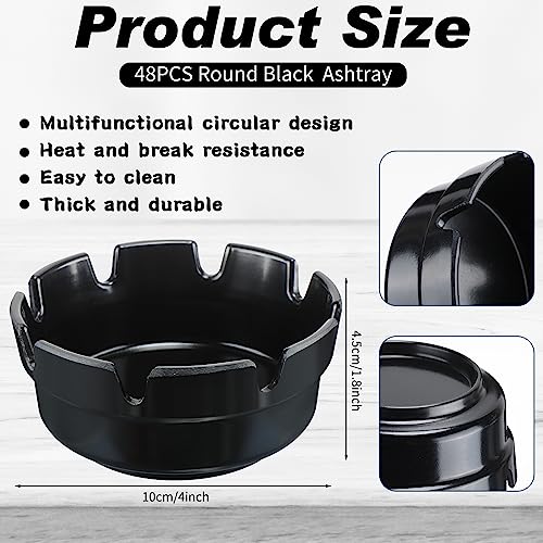 Reginary Pack of 48 Round Black Plastic Ashtrays Cigar Bulk Black Ashtray for Home Restaurant Bar Indoor Outdoor, 4 Inches in Diameter