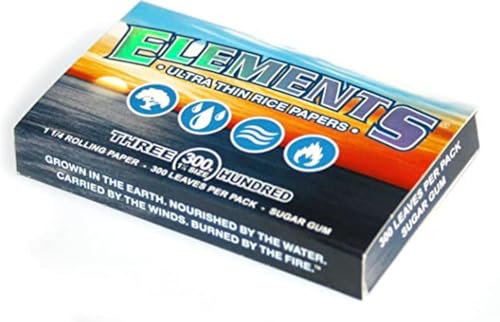 Elements 300 Rolling Papers have 300 ultra thin rice papers per box. The paper itself is 76mm in length and 44mm in width, the 300 papers come in a self enclosed box which you can slide open when you need a rolling paper. Elements 300 are Crease-less allowing you to fold the paper as you desire and create your prefect shaped roll-up cigarette. Elements only use natural sugar gum so you only need to moisten gently. Made from pure rice paper, which has been pressed to make a ultra thin rolling paper which creates a slow burning paper. The paper burns smoothly producing no ash except the caramel created as the sugar gum burns, this is the result of using a criss-cross imprint.