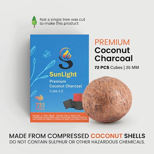 Sunlight® Premium Coconut Charcoal Cubes – (2.5mm) – Long Lasting Natural Coco Charcoal – Zero Ash – Low Odor – 2.5 mm Cubes – Long Lasting – Full Burn (72)