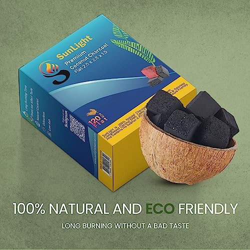 Sunlight Premium Coconut Charcoal Flats- 120 Half Cubes (1.25MM)- Long Lasting Natural Coco Charcoal – Zero ASH – Low Odor – 1.25MM Flats- Long Lasting – Full Burn