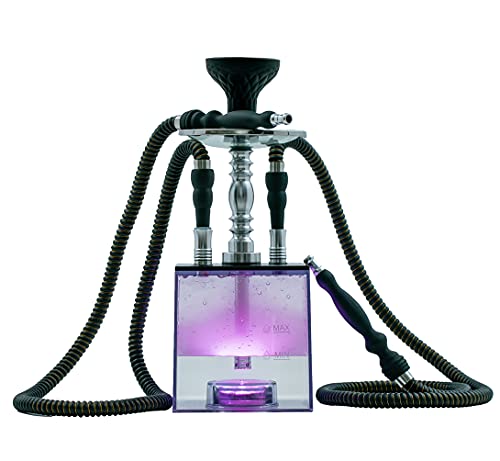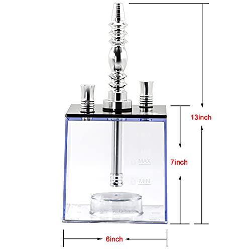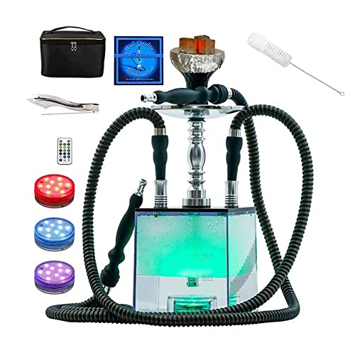 2 Hose Hookah Set,Portable Micro Modern Cube Acrylic Hookah with Silicone Hookah Bowl Two Leather Hose Coal Tongs Aluminum Stem,Cube Hookah with Remoted LED Light Custom Storage Bag and Cleaning Brush
