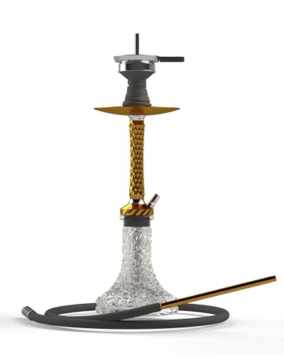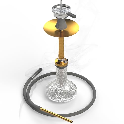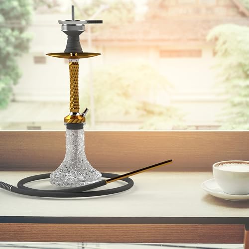 Hookah Set with Everything – 22″ Aluminum Glass Premium Shisha Hookah Complete Set with 1 Hose, Glass Vase, Hookah Coal Holder, Gold