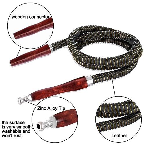 Hookah Hose 60” Washable Leather Hookah Pipe Wooden Handle Hookah Accessories