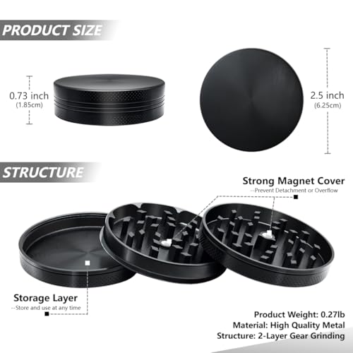 (Black) 2.5 inch Grinder, Portable, Suitable for Kitchen Use