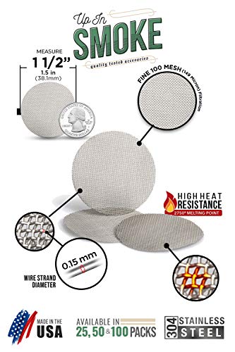 Made in The USA – 5 1.5 inches (1 1/2″) Steel Pipe Screen Filters (Extra Fine Mesh) – Up in Smoke Brand