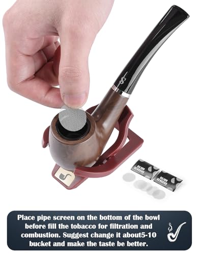 Joyoldelf Tobacco Pipe Set, Short Handle Curved Smoking Pipe with Foldable Pipe Stand Holder, Pipe Starter Kit for Beginner with Gift Box and Accessories