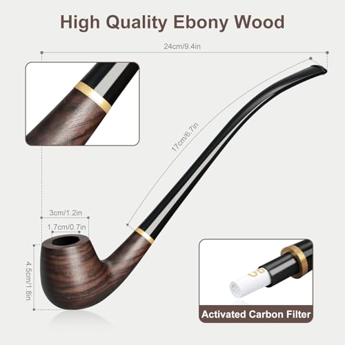 [Premium Ebony Wood Craftsmanship] Handcrafted from luxurious ebony wood, this smoking pipe boasts an elegant and natural wood grain finish. Its resistant material enhances heat resistance while delivering a smooth and refined smoking experience, making it ideal for connoisseurs and beginners alike.