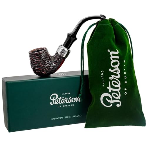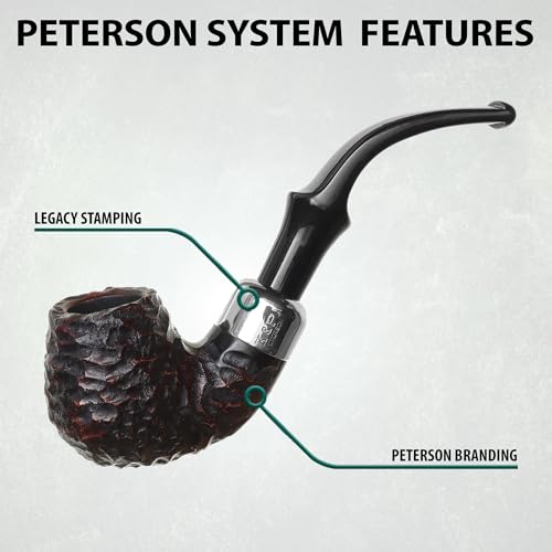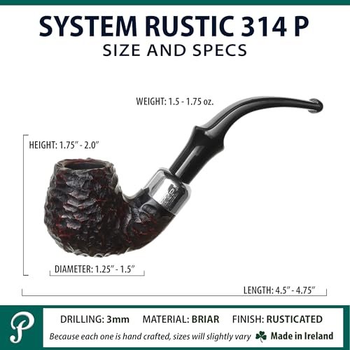 Peterson Pipes System Series Handmade in Ireland Mediterranean Briar Pipe – Vintage Design Collectible Hand Crafted Wood, Standard P-Lip, Bent Billiard 314, Rusticated Finish