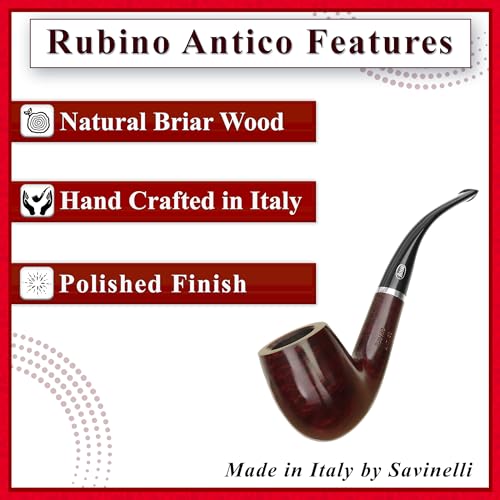 Rossi Rubino Antico Handmade Briar Pipe by Savinelli – Deep Red Hand Brushed Stain With Polished Finish & Rich Wood Grain, 6mm (8606)